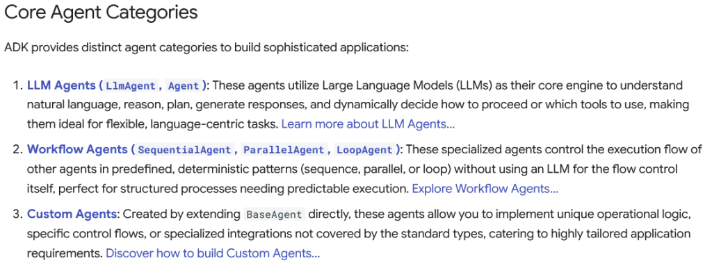 For more details on agent types and configurations, refer to the the ADK site.